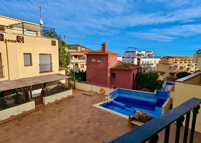 Evh123 Casa Adosada Con Piscina Comunitaria距离德拉玛尔蒙努达海滩11分钟的步行,而到Camping Cala Llevado走路只需25分钟。 别墅设有露台。